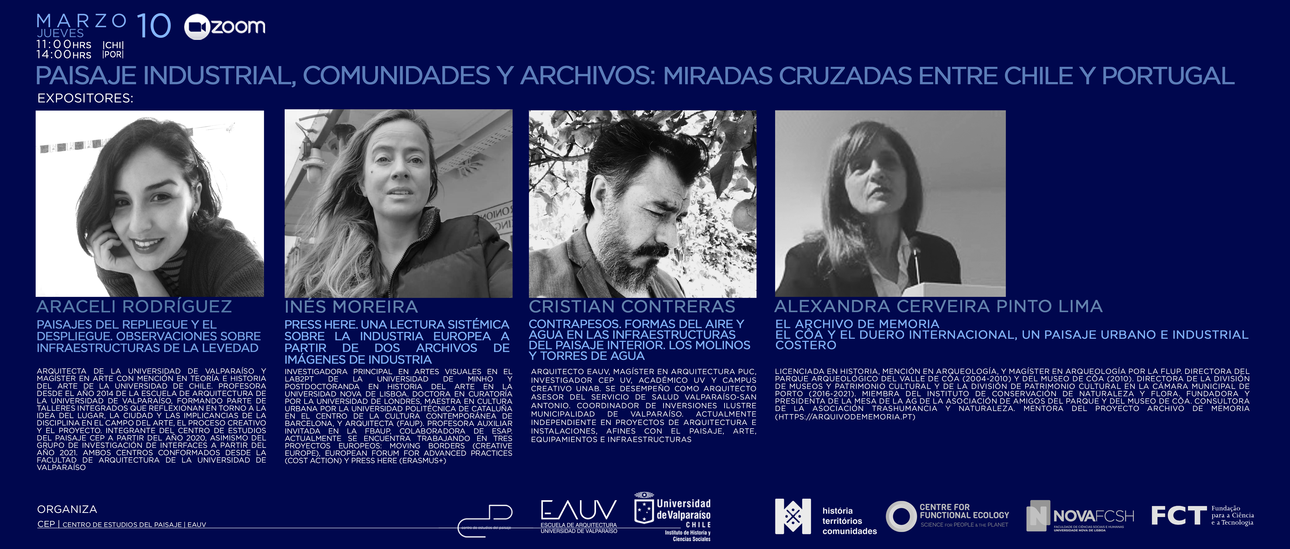 Este jueves 10 y viernes 11 de marzo se realizara el Seminario "Paisaje Industrial, Comunidades y Archivos, Miradas Cruzadas entre Chile y Portugal", actividad en la que participa el Instituto de Historia de la Universidad de Valparaíso.