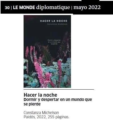 La noche por hacer de Constanza Michelson no es de tiniebla y oscuridad plena, aquella en donde no podemos diferenciar las cosas (la noche originaria), sino la que acontece al final de un día y en la que puede ocurrir lo que en el día de nuestra civilización ya no puede, pues donde todo se ha terminado reduciendo a su dimensión utilitaria y rentabilista se ha efectuado una mutilación de las cosas y de nosotros, un descarte de otros modos de existir, expulsados incluso del campo de la imaginación. En la noche –en principio– todo se detiene y surge la posibilidad de que pase lo que no pasa en el día (reflexionar, amar, ser inútil), lo que claramente para algunos puede traer una incomodidad extrema. La noche reivindicada en este libro es de luz tenue y reflejos delicados que nos exige una percepción distinta a la acostumbrada con la luz de nuestros días, en que –por sobreiluminadas– tampoco podemos diferenciar las cosas, tal como en la noche más oscura.