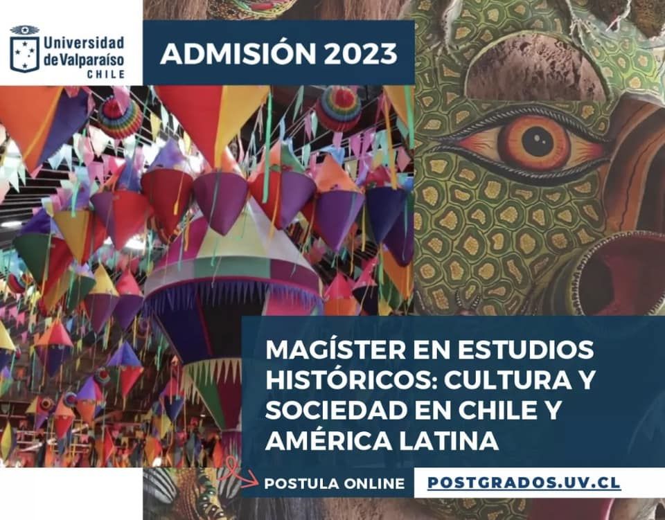 Se encuentran abiertas las postulaciones al Magíster en Estudios Históricos: Cultura y Sociedad en Chile y América Latina, impartido por el Instituto de Historia y Ciencias Sociales de la Facultad de Humanidades y Educación. Más información al correo: Esta dirección de correo electrónico está siendo protegida contra los robots de spam. Necesita tener JavaScript habilitado para poder verlo.https://historia.uv.cl/postgrado/magister-en-estudios-historicos