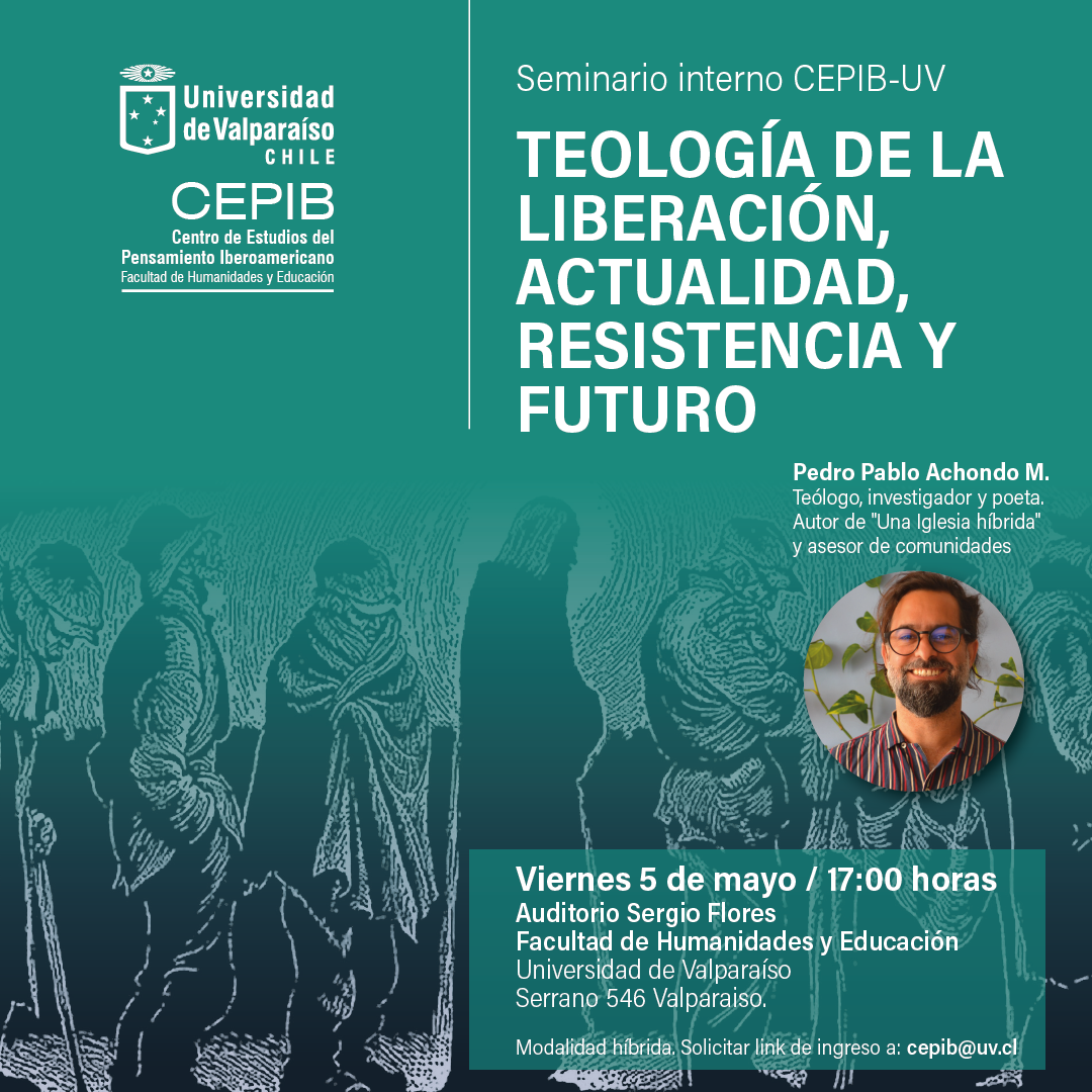 Estimadas y estimados, les extendemos una cordial invitación a la charla titulada "Teología de la liberación: actualidad, resistencia y futuro", que será dictada por el teólogo Pedro Pablo Achondo M. Esta actividad se llevará a cabo el día viernes 5 de mayo a las 17:00 horas en el Auditorio Sergio Flores de la Facultad de Humanidades y Educación de la Universidad de Valparaíso, ubicada en Serrano 546. Esta actividad se realizará de manera hibrida, los que deseen participar de manera virtual pueden escribir a Esta dirección de correo electrónico está siendo protegida contra los robots de spam. Necesita tener JavaScript habilitado para poder verlo.