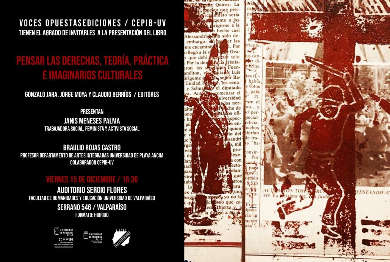 Estimadas y estimados, están cordialmente invitados al lanzamiento del libro "Pensar las derechas: teoría, prácticas e imaginarios culturales" de Voces Opuestas Ediciones y el CEPIB-UV. En esta ocasión, el libro será comentado por la activista social Janis Meneses y el Doctor en Filosofía Braulio Rojas. La actividad se llevará a cabo el viernes 15 de diciembre en la Facultad de Humanidades de la Universidad de Valparaíso, específicamente en la sala Sergio Flores en el cuarto piso, a las 16:30 horas.