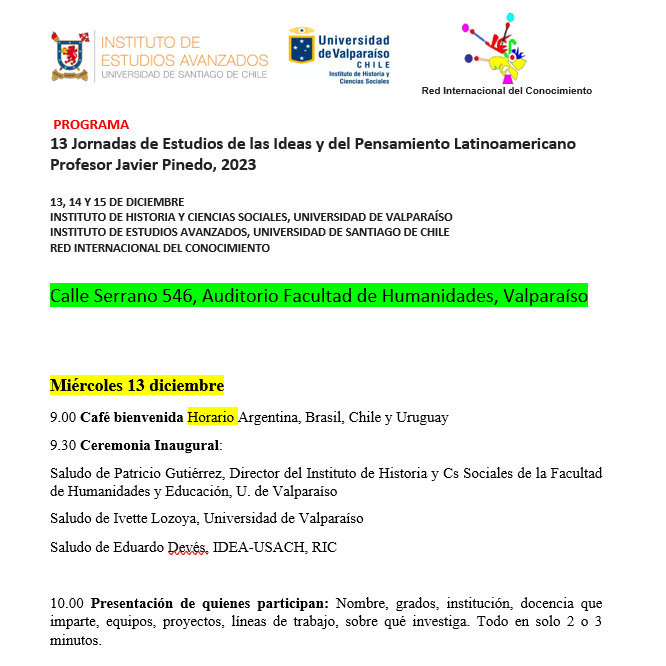 13 Jornadas de Estudios de las Ideas y del Pensamiento Latinoamericano Profesor Javier Pinedo, 2023