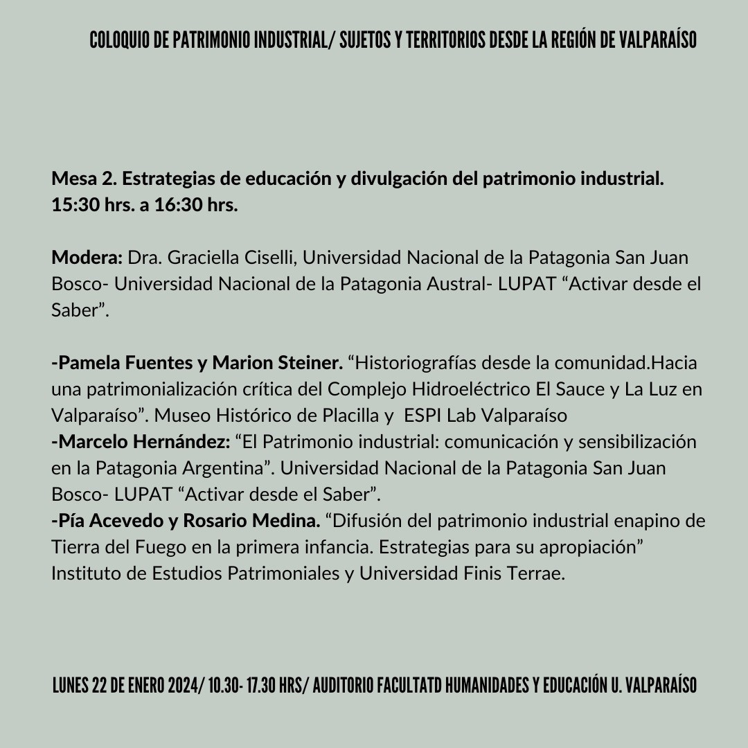 El próximo lunes 22 de enero, entre las 10.30 y las 17.30, vamos a comenzar este 2024 dialogando y reflexionando en torno a patrimonio cultural industrial junto a investigadoras e investigadoras vinculadas a esta temática.