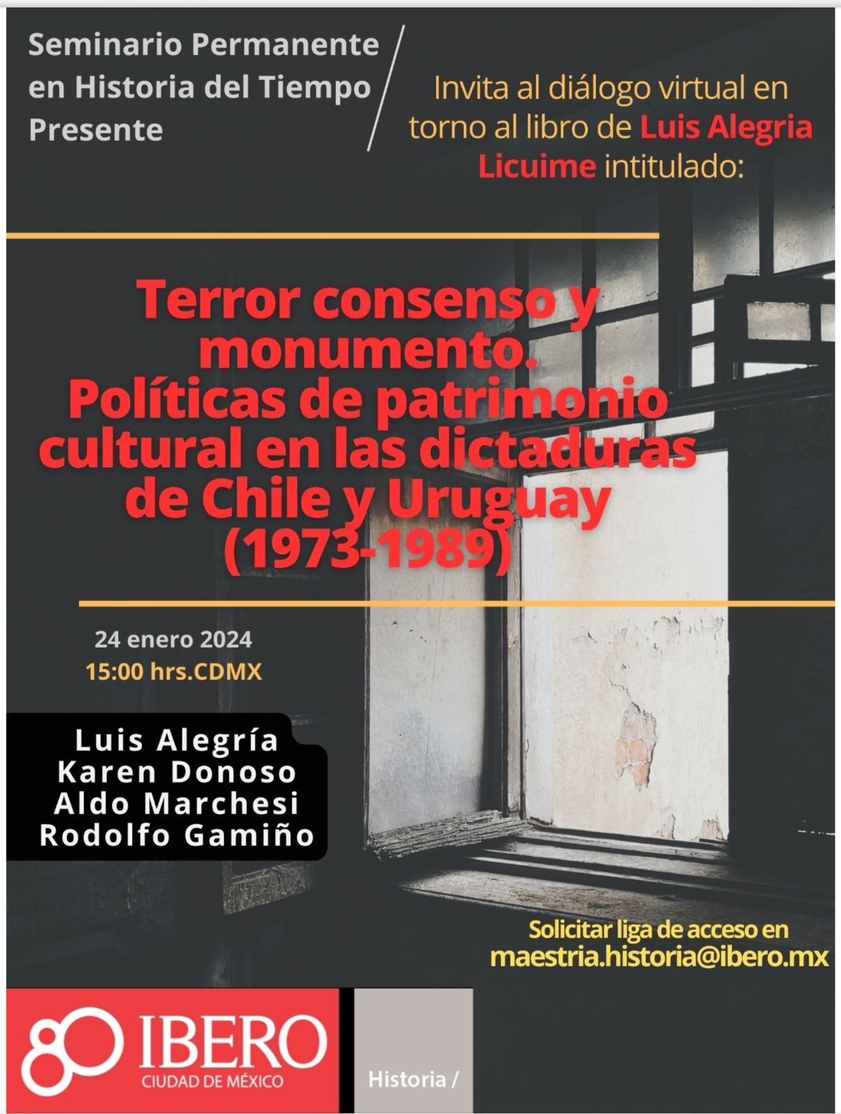 Seminario de Historia del Tiempo Presente de la Universidad Iberoamericana de Ciudad de México, organizaron un conversatorio on line, en torno a mi libro: Terror, Consenso y Monumento. Políticas de patrimonio cultural en las dictaduras de Chile y Uruguay (1973-1989).