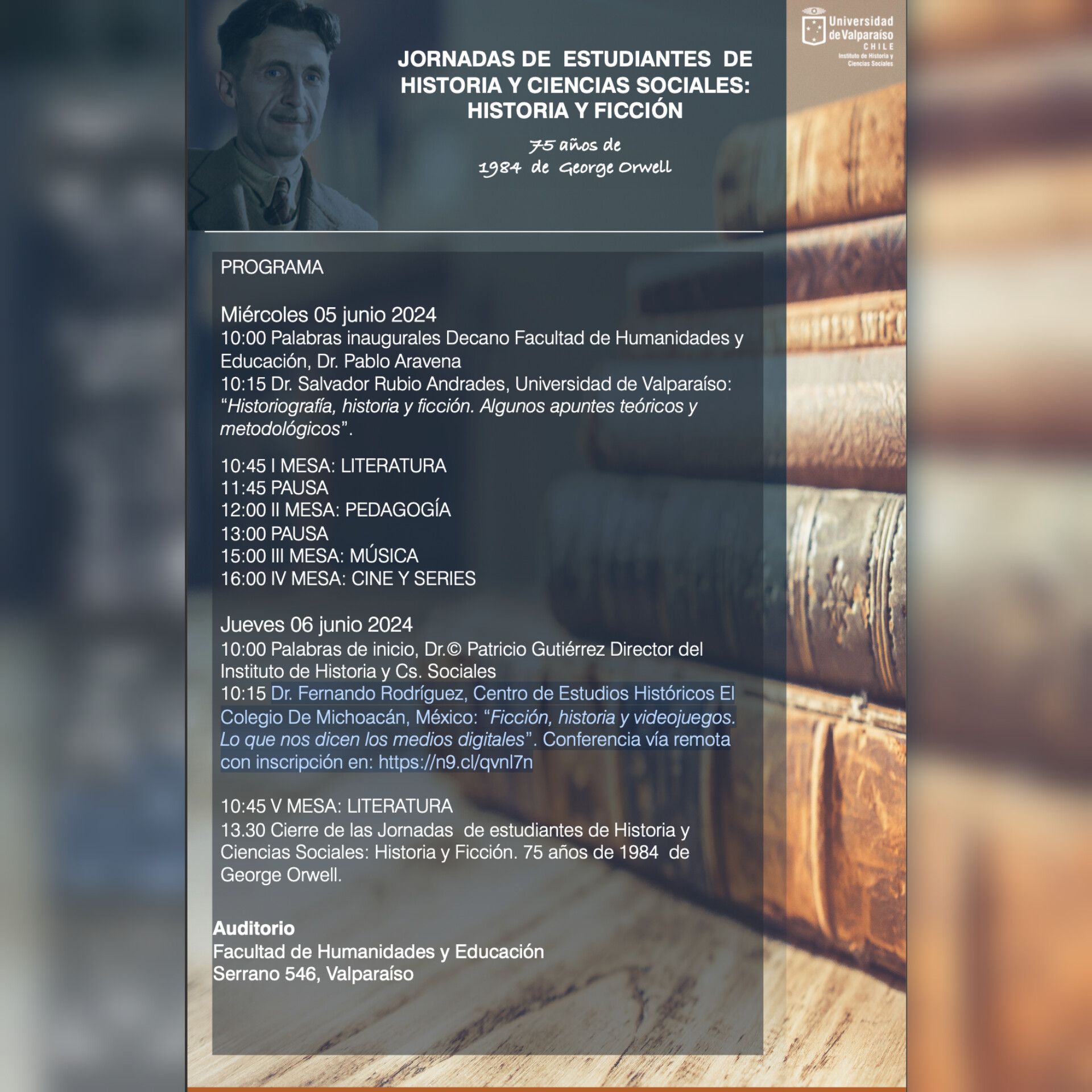 Los/as invitamos a las "Jornadas de estudiantes de Historia y Ciencias Sociales: Historia y Ficción. 75 años de 1984 de George Orwell", donde presentarán comunicaciones estudiantes de pre y postgrado de nuestra Universidad y otras. Ver programa adjunto.