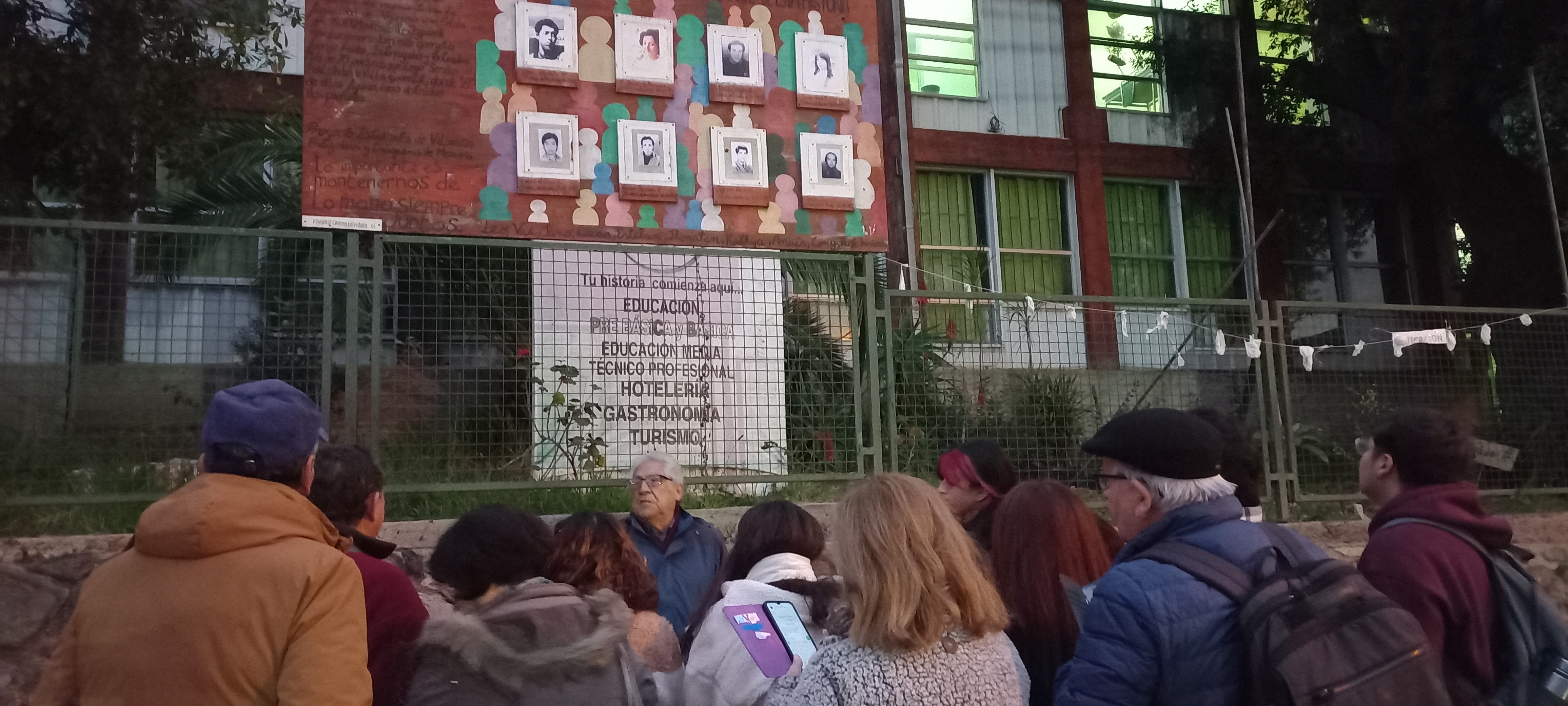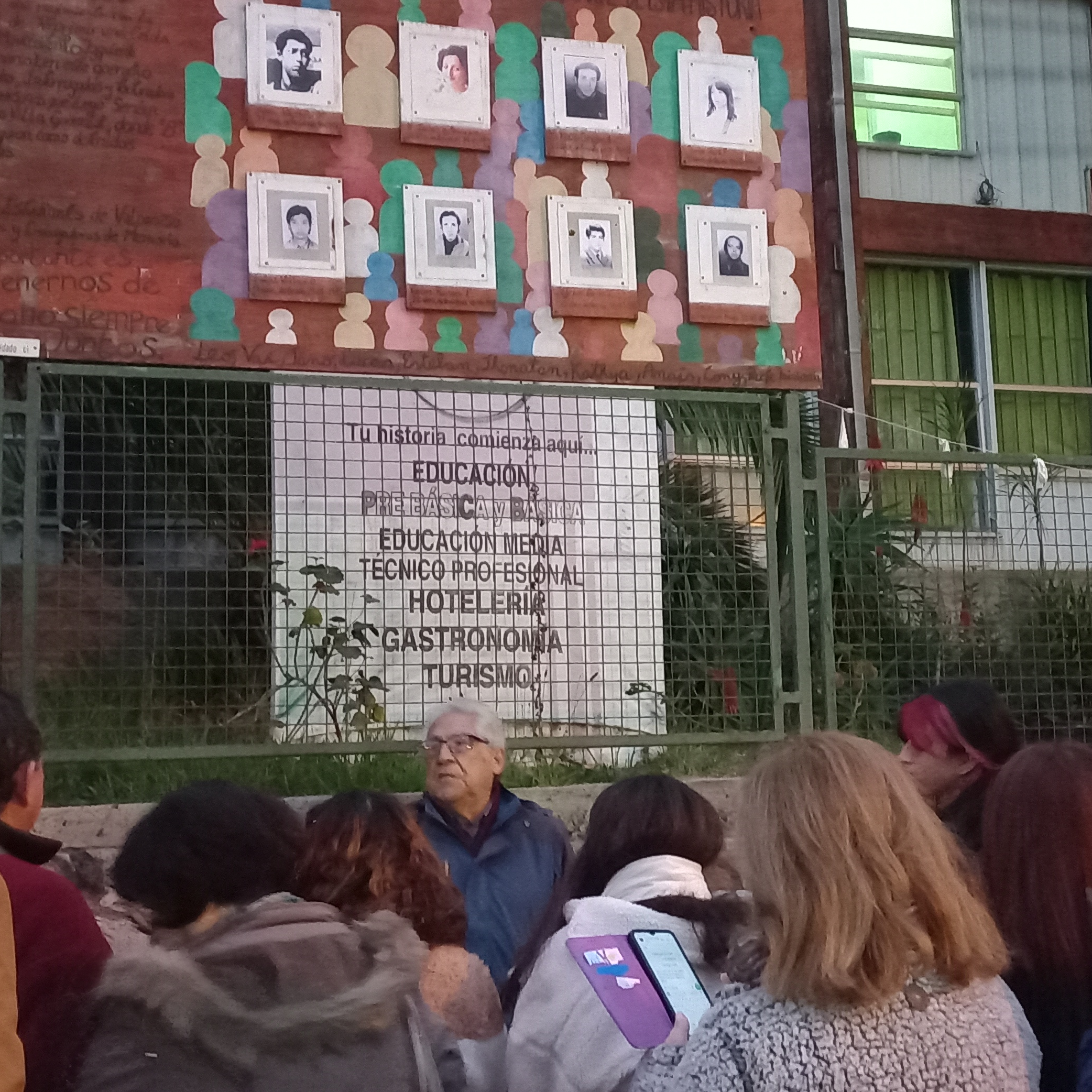 Con la “Ruta de la Memoria en Playa Ancha”, el día 4 de junio pasado se realizó la primera salida a terreno del TIPE 1 del 3er año (Taller de Integración Perfil Egreso) de la carrera Pedagogía en Historia y Cs. Sociales de la Universidad de Valparaíso, impartido por el Prof. Eduardo Cobos. Para este semestre, el profesor organizó una colaboración con la Asociación Usuarios PRAIS (Programa de Reparación y atención en Salud) comunal Viña del Mar, en cuanto socio para la realización de la asignatura. En esta ruta se recorrieron conjuntamente algunos sitios de memoria, que dan cuenta de la violación de los DD. HH. en Valparaíso durante la dictadura civil-militar (1973-1990). En particular se visitaron: Memorial Estadio, Memorial UPLA, Memorial Facultad de Arquitectura UV, Murallas Departamento de Ciencias UV y Memorial Liceo María Luisa Bombal. Durante el recorrido se presentaron relatos, a cargo del cronista e historiador Héctor Vásquez (Patrimonio del Borde Costero de Playa Ancha), más los aportes de los usuarios/as del PRAIS, quienes en dictadura fueron directamente afectados/as en sus derechos humanos con prisión política y tortura.