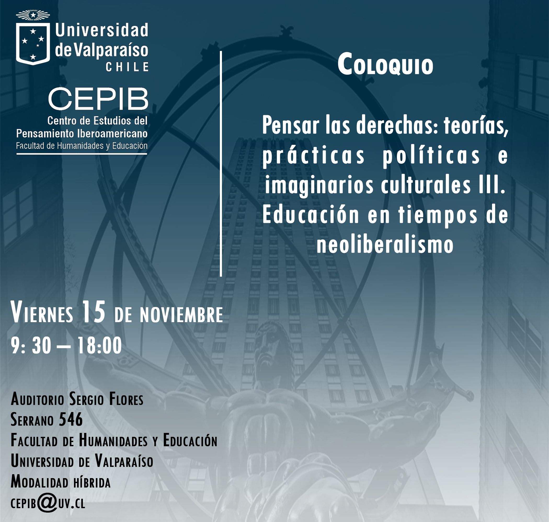 La actividad se llevará a cabo el próximo viernes 15 de noviembre. Este evento busca reunir a académicos, investigadores y estudiantes interesados en explorar y debatir sobre las configuraciones políticas y culturales de las derechas en el contexto actual. La cita será en en el Auditorio Sergio Flores, Facultad de Humanidades y Educación, Universidad de Valparaíso (Serrano 546) en modalidad híbrida.