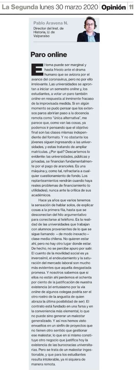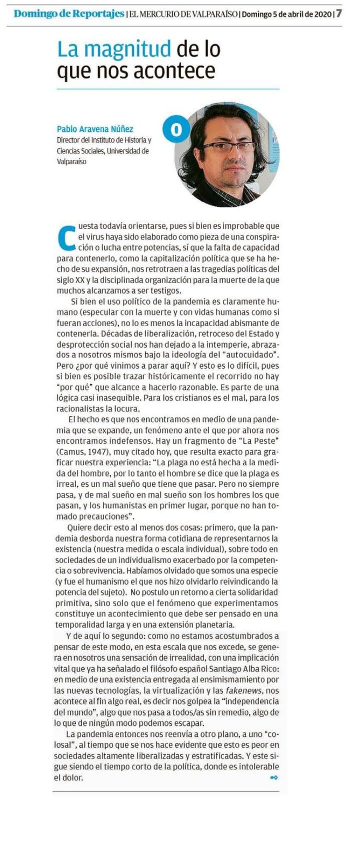 Por Pablo Aravena Núñez, Director del Instituto de Historia y Ciencias Sociales de la Universidad de Valparaíso.