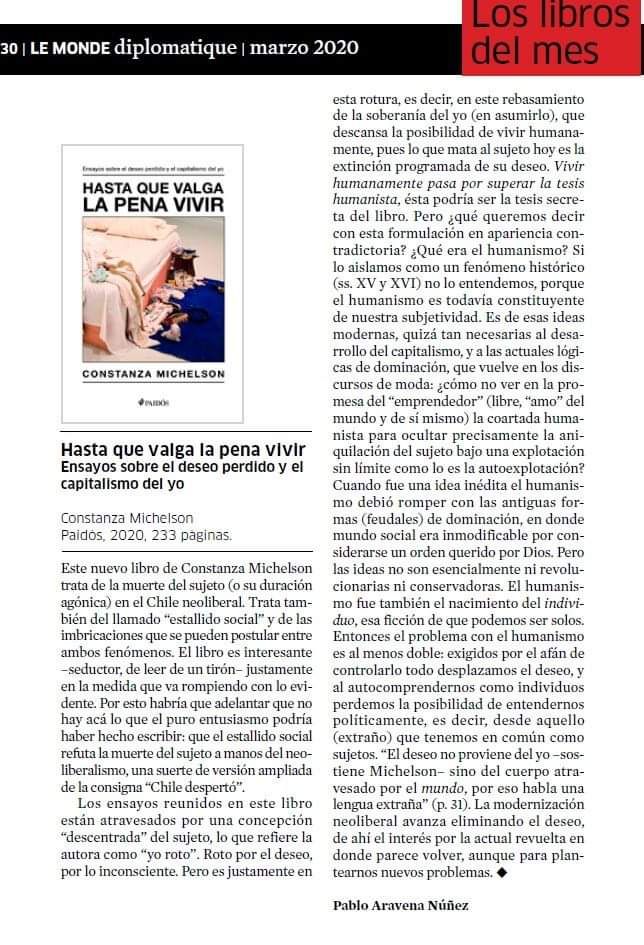 HASTA QUE VALGA LA PENA VIVIR / Ensayos sobre el deseo perdido y el capitalismo del yo/ Reseña Pablo Aravena Núñez.
